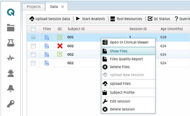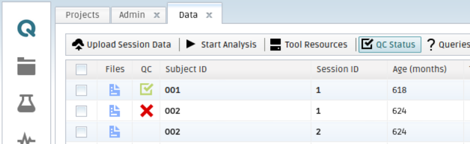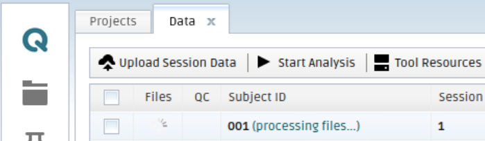 Once a data session is successfully uploaded to the QMENTA Platform, the Protocol Adherence Automation analysis (refer to Automatic QC Status Modifications) will start automatically.