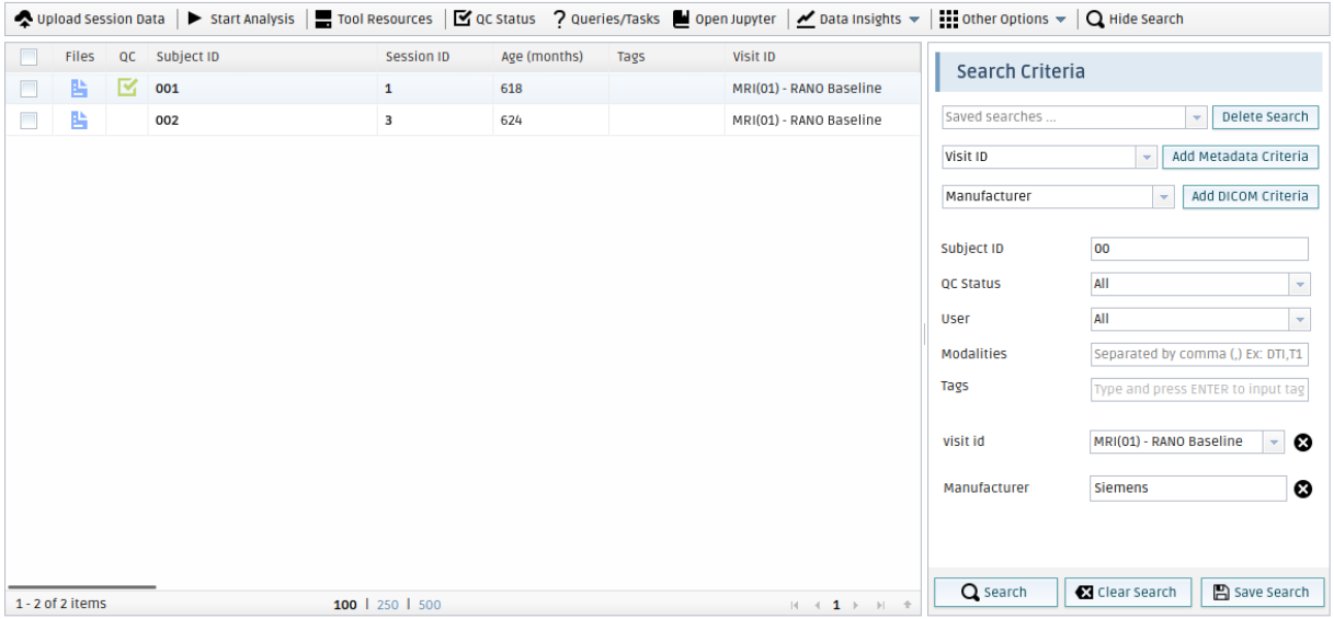 Similarly to the direct manual modification of the project-level metadata values explained in section Project-level Metadata Values Modification, analyses themselves may also modify the metadata of the corresponding Subject ID/Session ID. The metadata modified will depend on the analysis executed and it will be available in the Data tab.