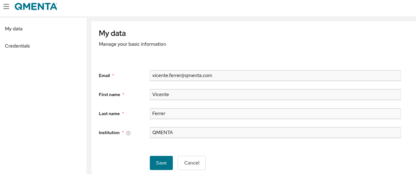 Alternatively you can register with a google account, using the “Log in with Google” (Fig. 1). This will link your Google and QMENTA account allowing you to access the QMENTA Platform using your Google account. However, you should still confirm your First name, Last name and Institution, as well as set up a separate password.