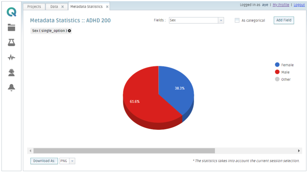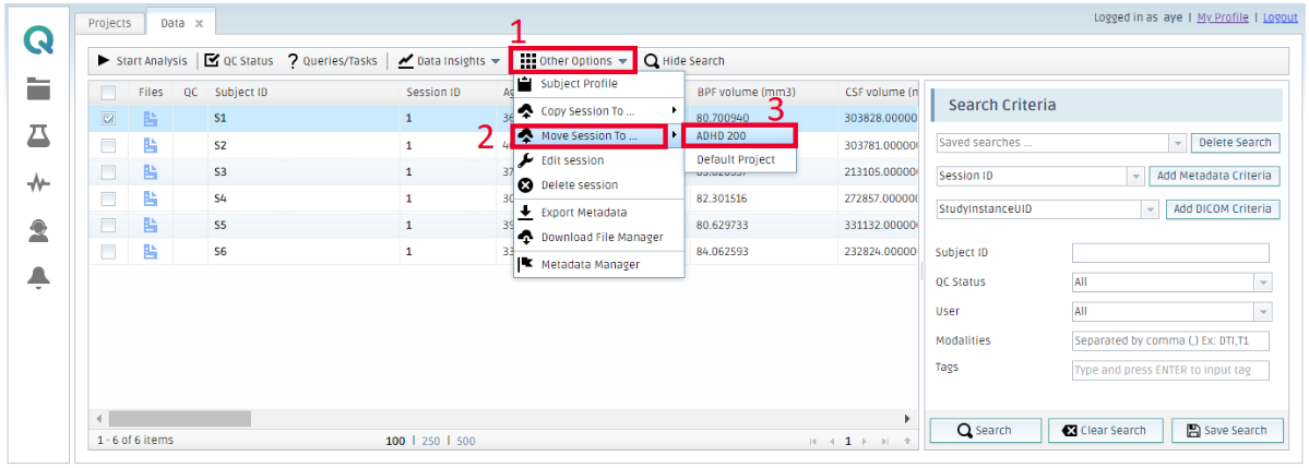 Session ID: Numerical identifier of an imaging session associated with a participant (Subject ID) in a QMENTA Platform project. The pair Subject ID/Session ID uniquely identifies every imaging session in a QMENTA Platform Project.