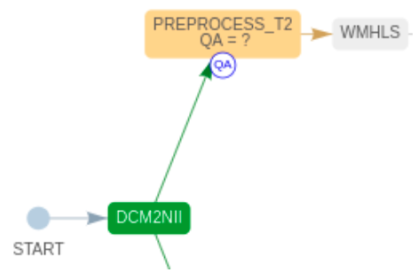 An example information of a failed workflow is shown in Fig. 93. You can see how the workflow is missing the “T2 flair” image to continue execution of the “LST_LPA” tool. Errors of failed tools are shown similarly.