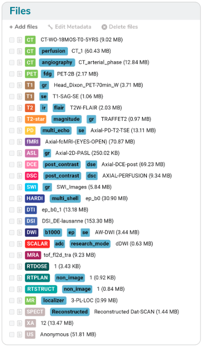 A label automatically or manually added to a data file uploaded to the QMENTA Platform.