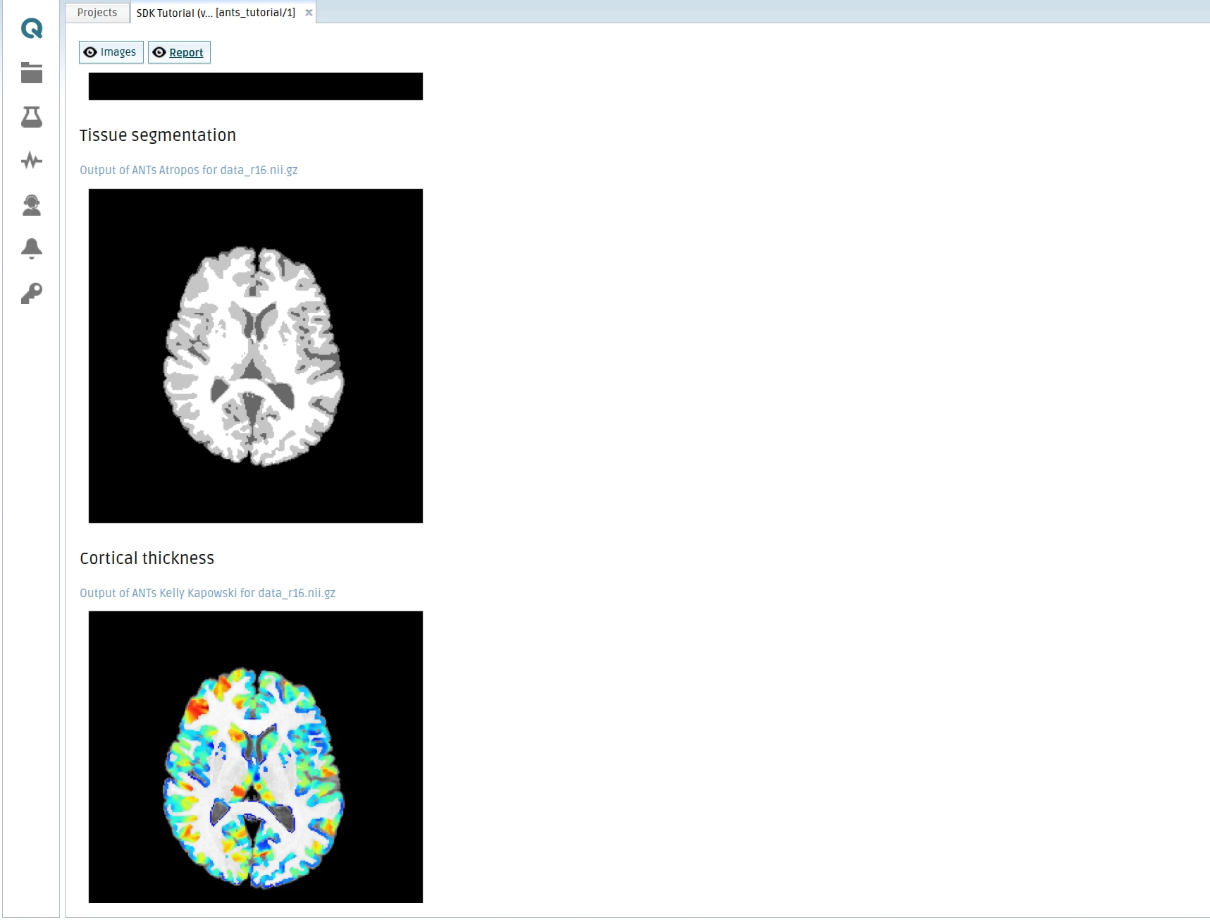 The resulting tool will extract some statistics, segment anatomical neuroimaging data (2D slice) and report the segmentation results in the online viewer, demonstrating how an existing analysis workflow can be transformed into a reusable and deployable QMENTA tool. In case you are curious, you can check what kind of tools QMENTA has already available in the QMENTA Tools Catalog.